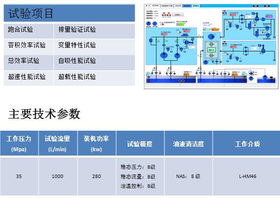 概述 試驗臺適用于工程機械閉式柱塞泵、馬達綜合試 驗,可對各種變量形式柱塞泵或馬達測試。配置 兩路獨立閉式加載回路,運行轉速、加載壓力精 確控制,可對雙聯(lián)泵及補油泵進行獨立測試。采 用工控機+PLC組合控制、Labview編程,操作界 面圖形化。試驗數(shù)據(jù)實時顯示或根據(jù)需要生成性 能曲線,可自動生成試驗報表并存儲或打印。 技術特點 •集成式封閉結構,噪音控制、安全防護、泄漏 油液回收利用。 •自動生成試驗數(shù)據(jù)或性能曲線報表并存儲、選 擇性打印。 •高效變頻電機驅動,電渦流加載。 •試驗流量、加載壓力無級調整。 可選擇全自動試驗或手動試驗。 |